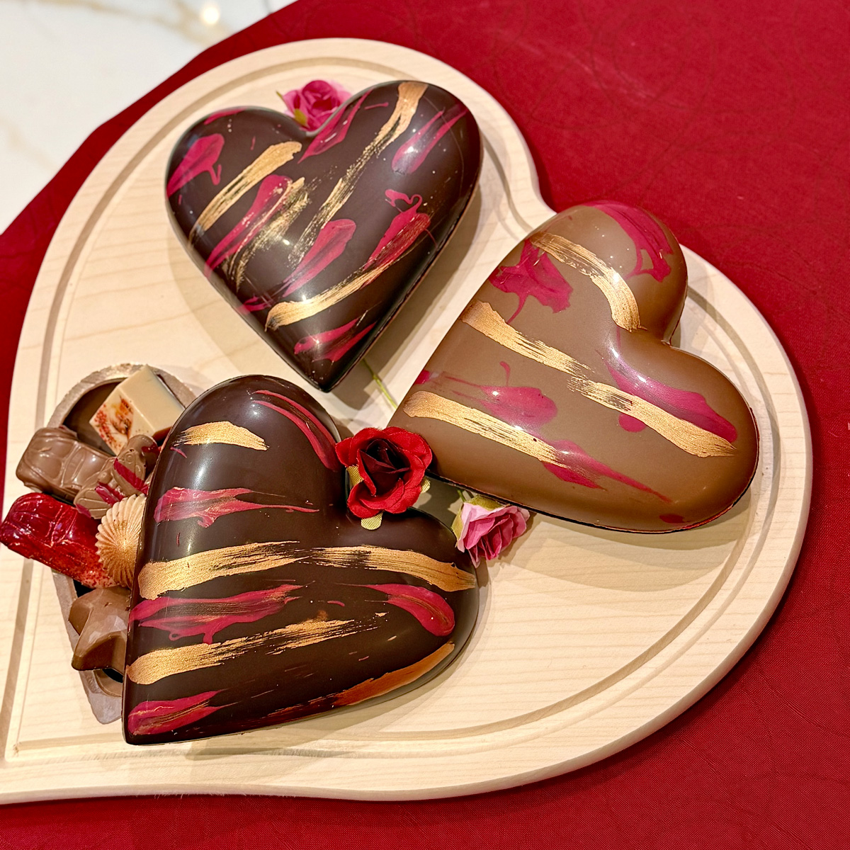 Onze kleine chocolade hartjes, gevuld met praliné, zijn handgemaakt met zorg en liefde. Een heerlijk cadeautje om iemand mee te verrassen.
