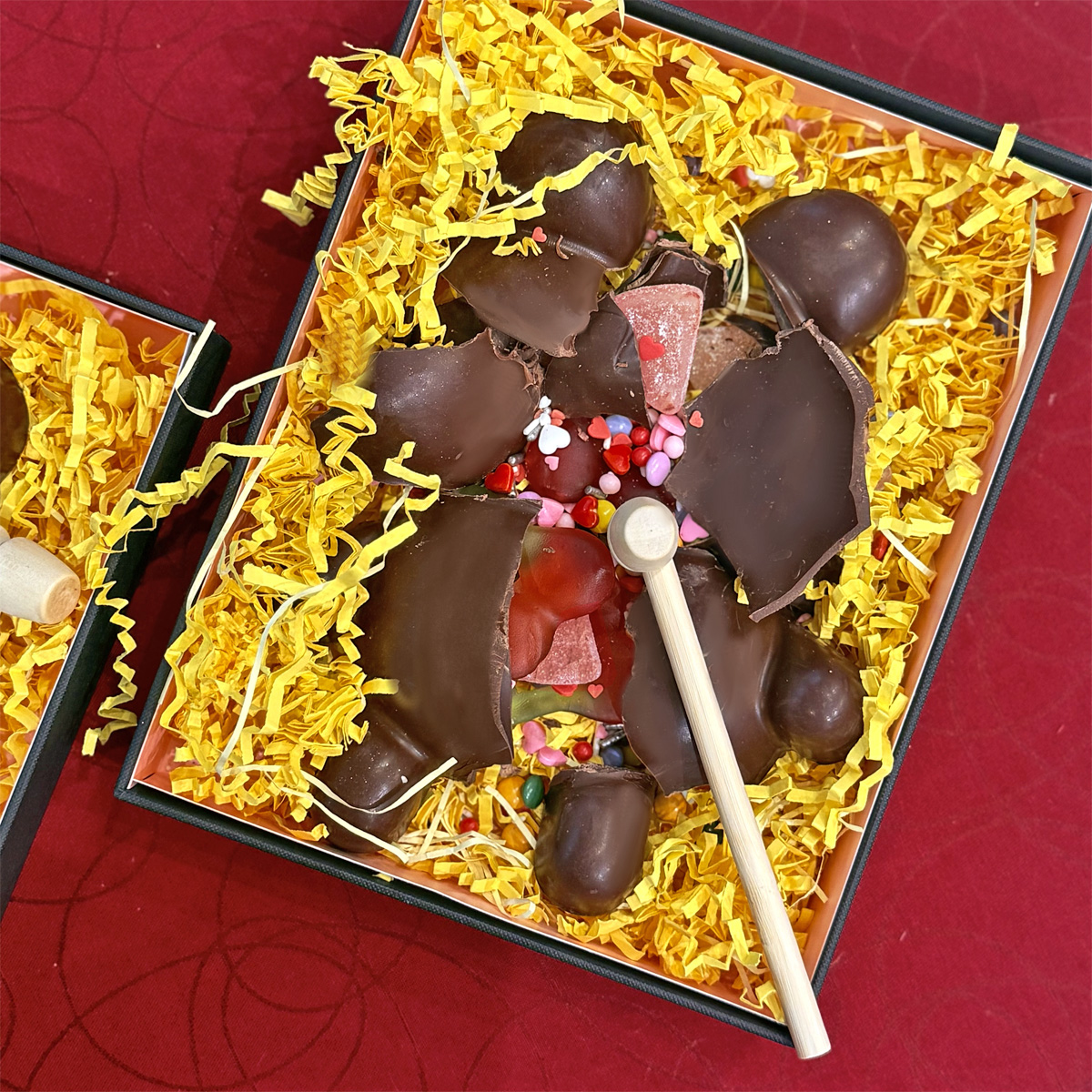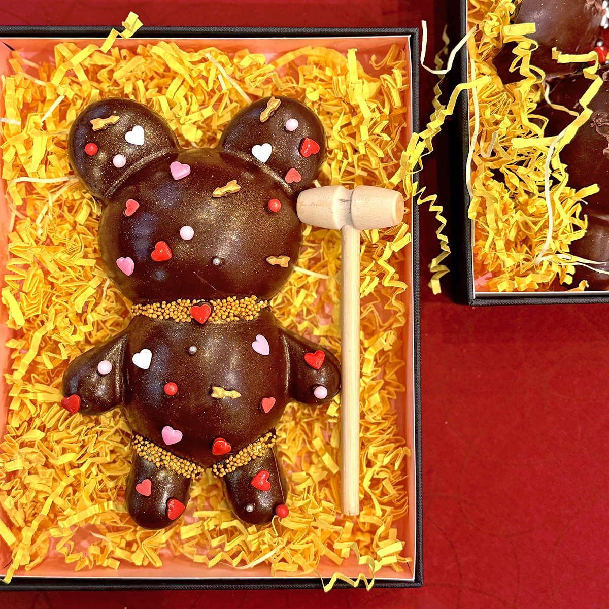 Op zoek naar een origineel Valentijnscadeau? Dit chocoladebeertje is niet zomaar lief om te zien… je mag ’m kapot slaan. Binnenin zit een heerlijke verrassing van snoep en chocolade om samen van te genieten. Liefde zit van binnen!